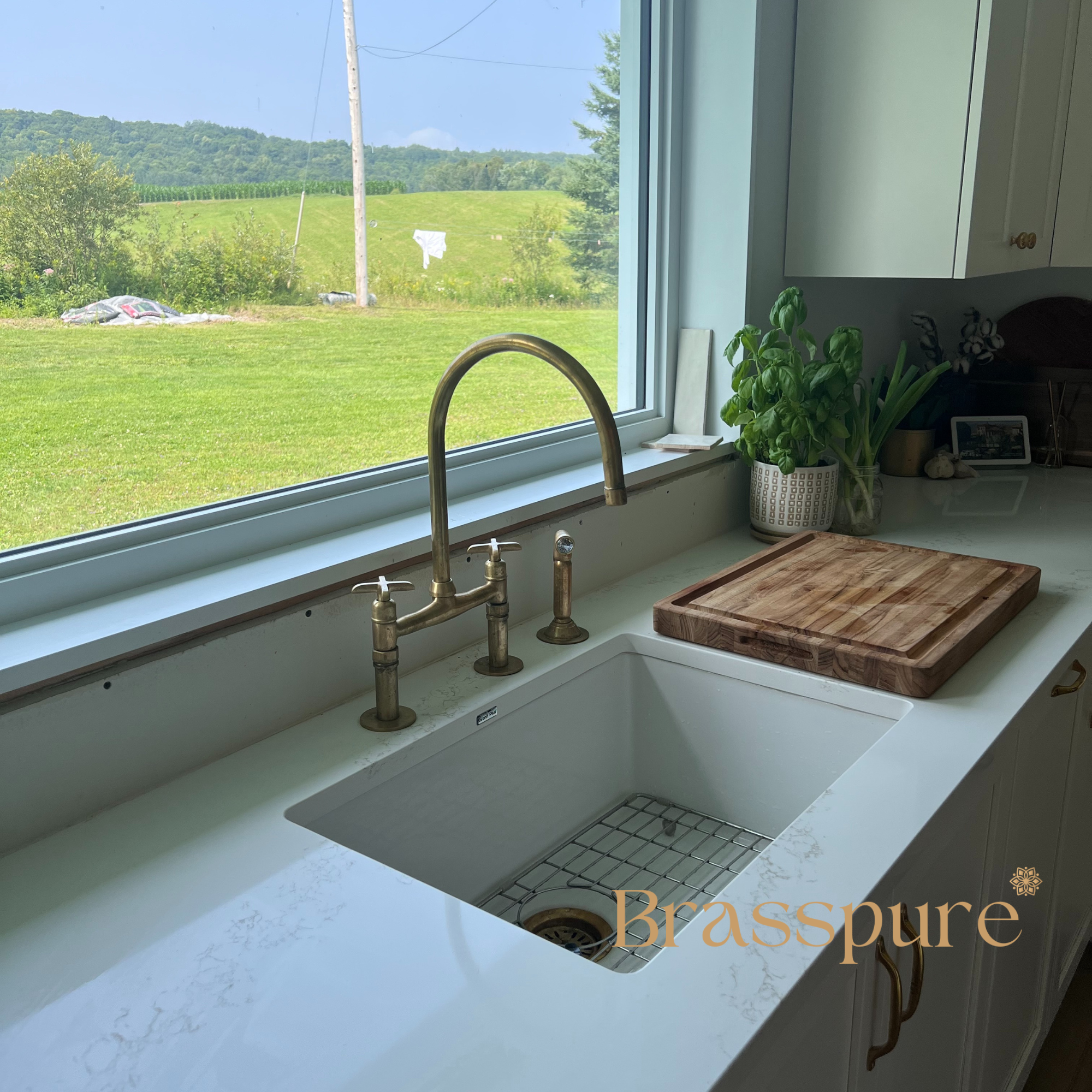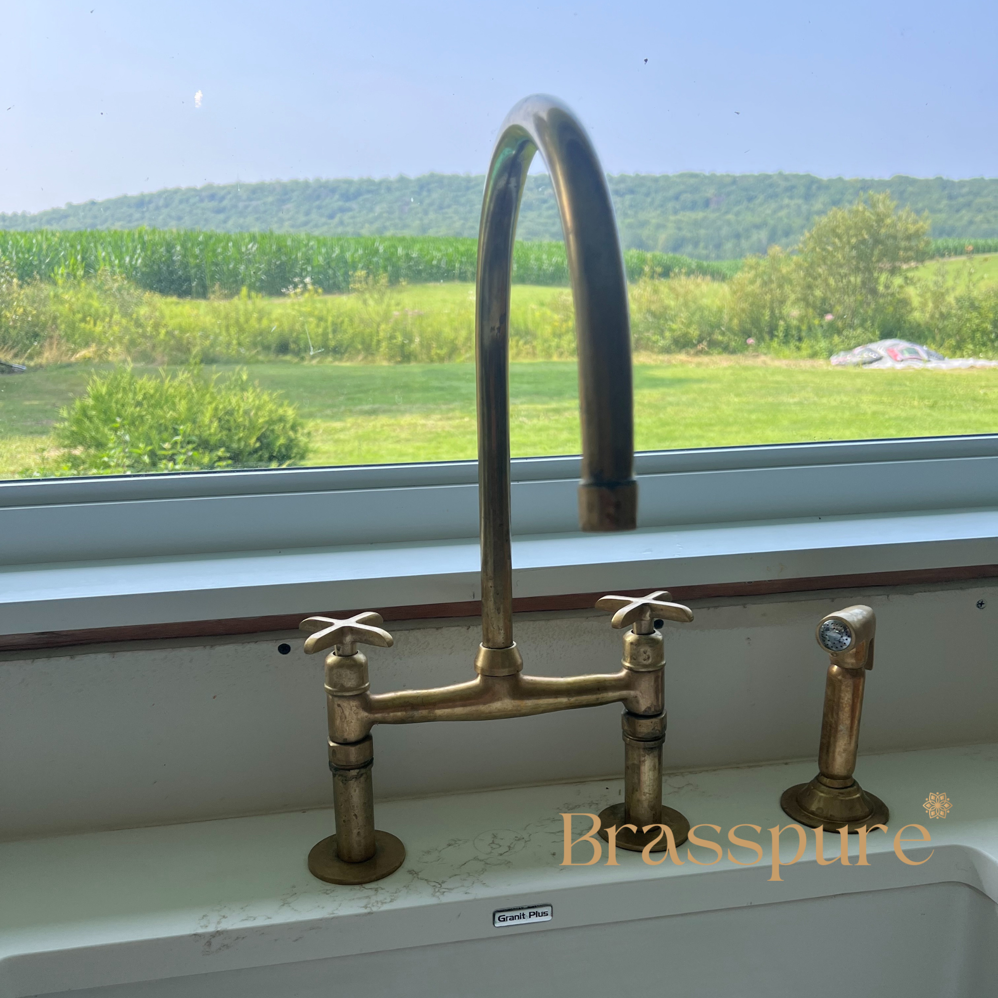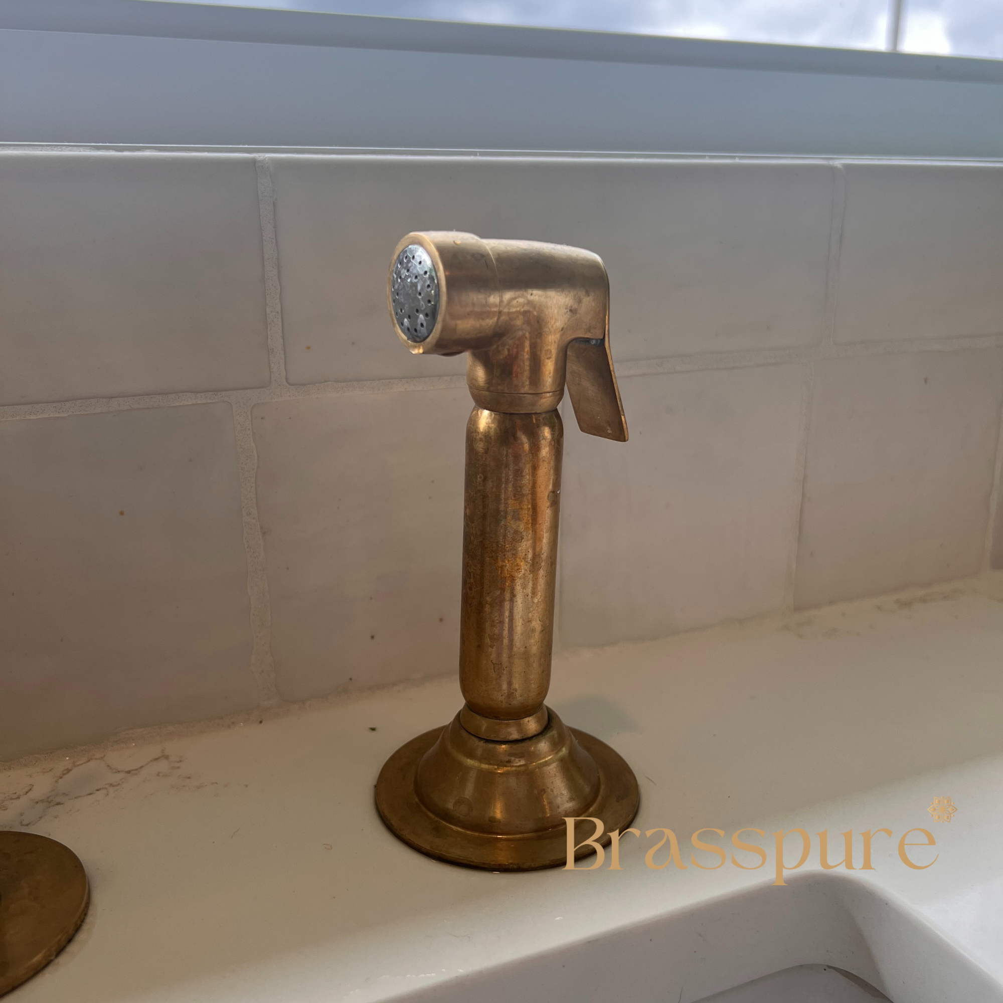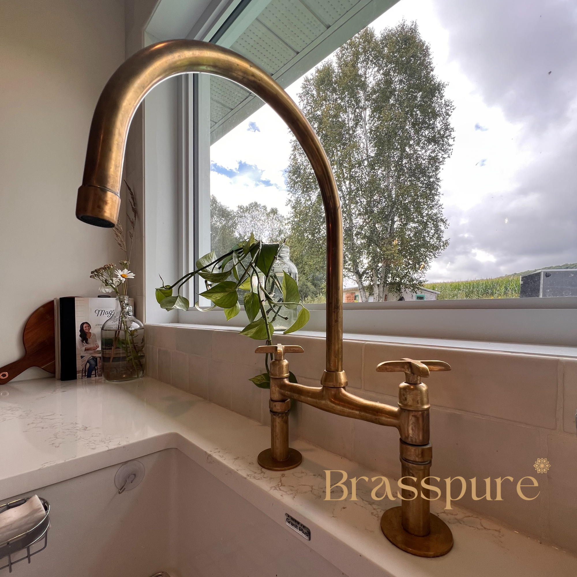 BRASSPURE kitchen faucets are Carefully handmade from high-quality brass, ensuring durability and elegance. These faucets gracefully age over time, developing a unique patina that enhances their vintage look. Perfect for any kitchen seeking a classic look, BRASSPURE faucets combine craftsmanship and style.